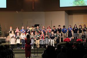 The 5th Grade Choir’s selections were “Peace I Leave With You” with accompanist Jenna Habegger and “This is How We Know What Love Is” featuring soloists Nati Daniel, Xander Bowers, Sesen Solomon, and Zeke DeBoard and accompanist Ms. Stewart. The 6th-8th Grade Choir performed “God Rest Ye Merry Gentlemen” and “Light of the World” featuring soloists Ruth Daniel, Lexi Wray, Hannah Houston, Sarah Seckman, Lena Lesko, and Jaslyn Lyles. The 7th and 8th Grade Choir presented “Silent Night (With Savior King).”