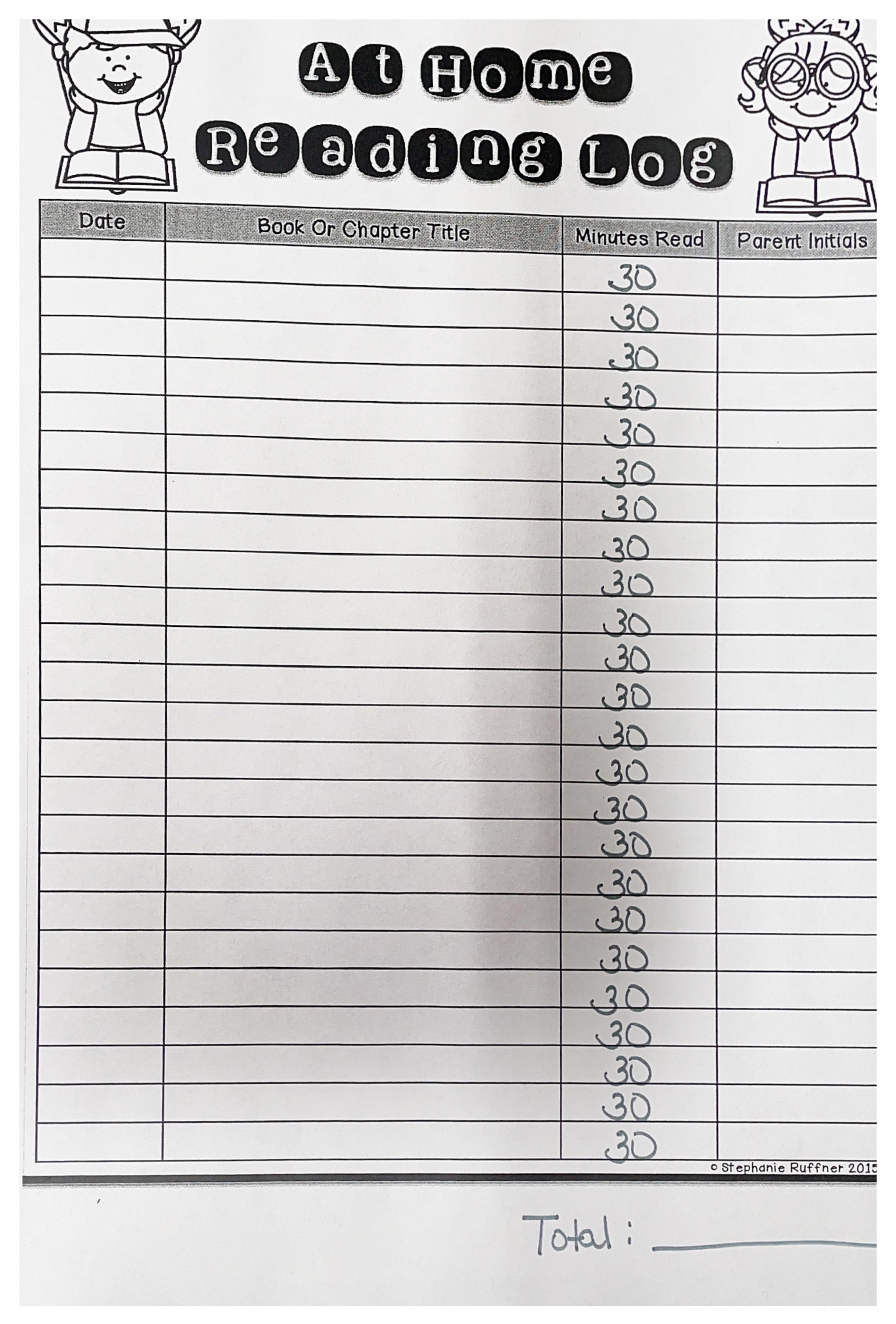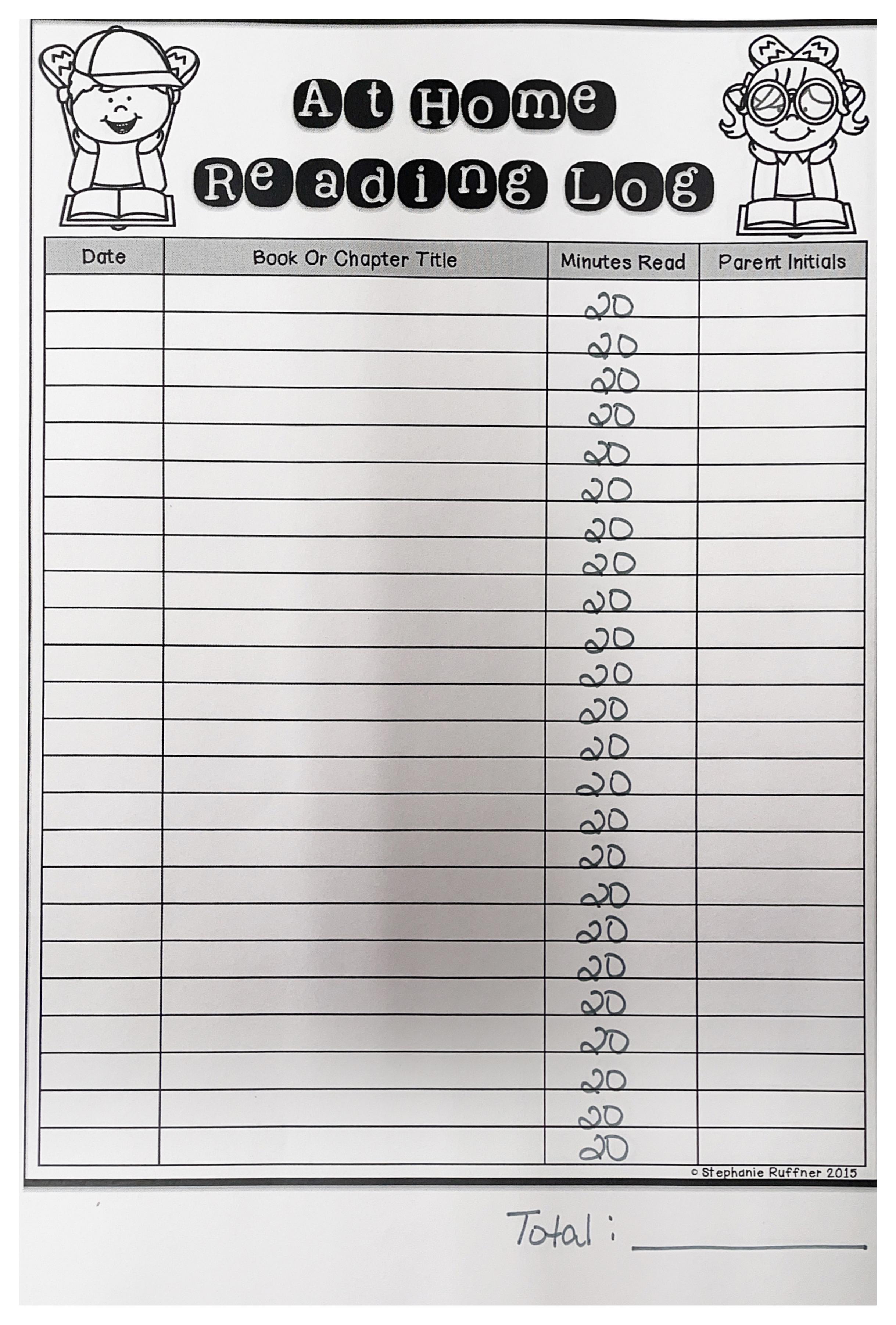 K-2nd will read for 20-minute intervals, and 3rd-5th will read for 30-minute intervals. This makes tallying the total much simpler.